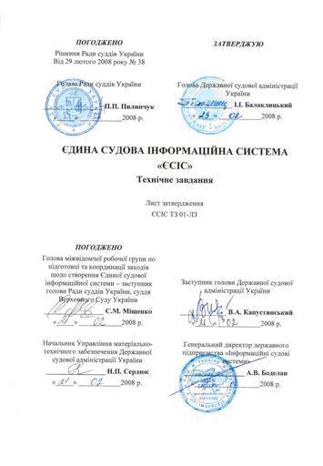 Технічне завдання (ТЗ) на Єдину судову інформаційну систему України (ЄСІС) встановлює загальні функціональні та інші вимоги до комплексу комп’ютерних програм, які повинні використовуватись в судах та інших установах системи судоустрою України.