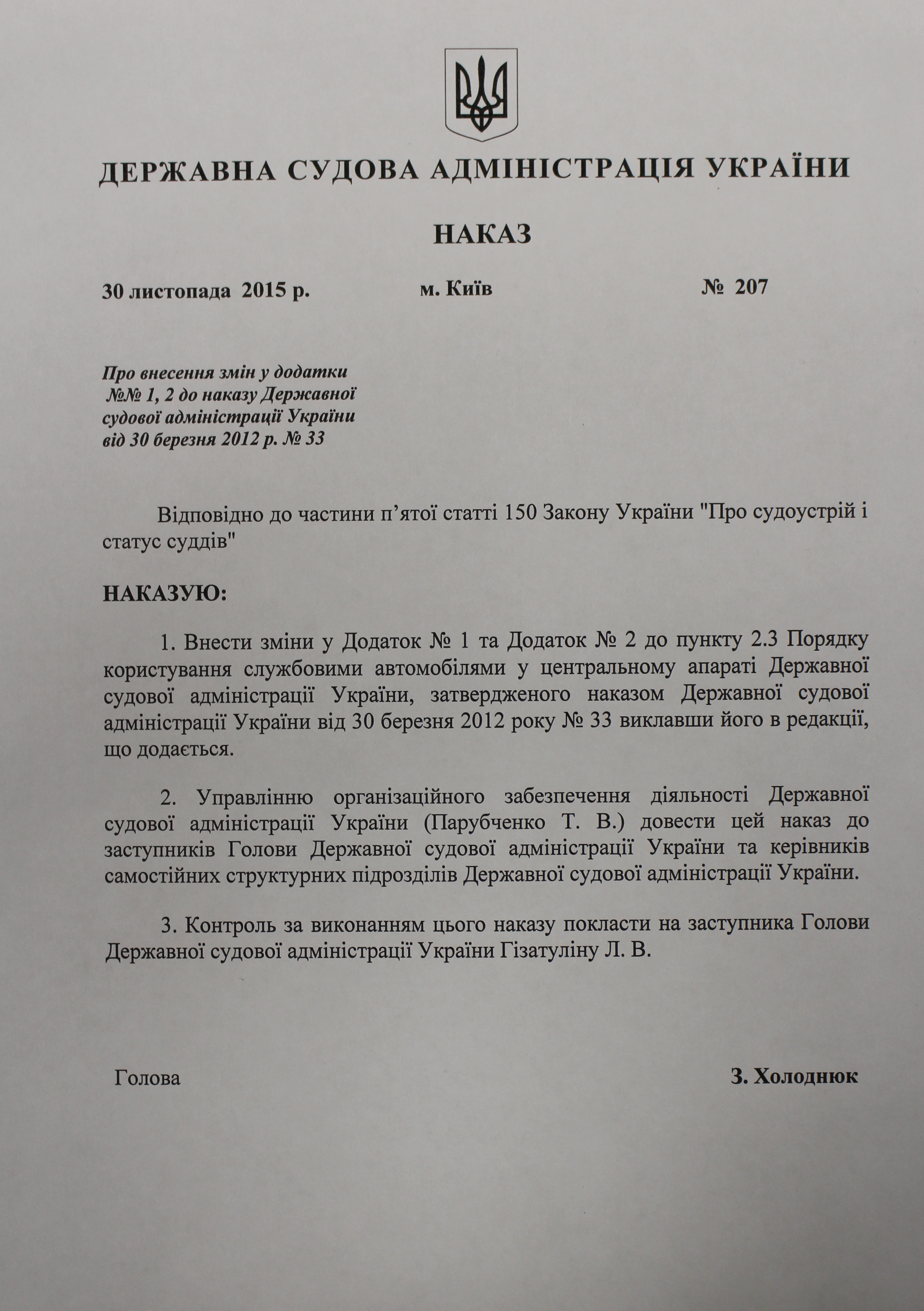 Розподіл лімітів пробігу службових автомобілів, що використовується керівним складом Державної судової адміністрації України