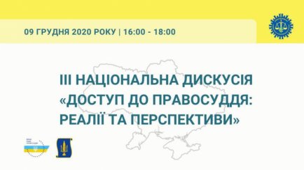 09.12.2020 з 16 до 18 на базі Асоціації розвитку суддівського самоврядування України відбудеться третє фахове обговорення в межах Національної дискусії «Доступ до правосуддя: реалії та перспективи».