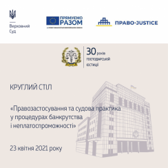 23 квітня 2021 року з нагоди 30-річчя створення господарських (арбітражних) судів України відбудеться круглий стіл «Правозастосування та судова практика у процедурах банкрутства і неплатоспроможності», організований Касаційним господарським судом у складі Верховного Суду у співпраці з проєктом Європейського Союзу «Право-Justice».