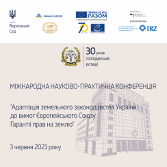 3 червня 2021 року о 10:00 відбудеться Міжнародна науково-практична конференція «Адаптація земельного законодавства України до вимог Європейського Союзу. Гарантії прав на землю», організована Верховним Судом.