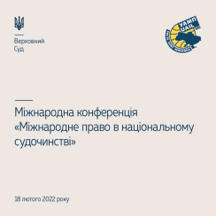18 лютого 2022 року відбудеться Міжнародна конференція «Міжнародне право в національному судочинстві», організована Верховним Судом спільно з Українською асоціацією міжнародного права.