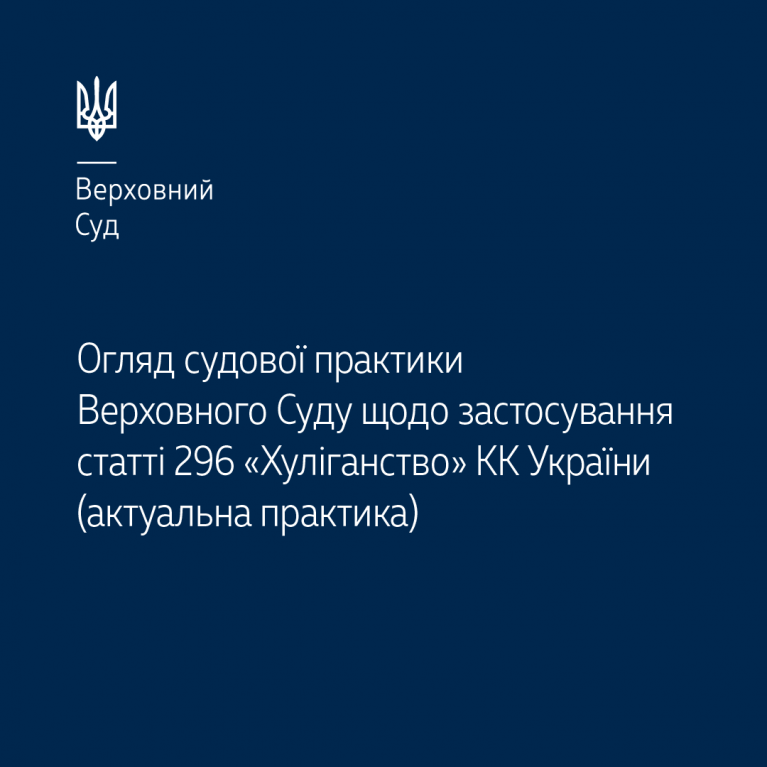 Касаційний кримінальний суд у складі Верховного Суду підготував тематичний огляд актуальної практики застосування ст. 296 КК України, яка передбачає кримінальну відповідальність за хуліганство – https://court.gov.ua/storage/portal/supreme/ogliady/Oglyad_KKS_st_296_hyliganstvo.pdf