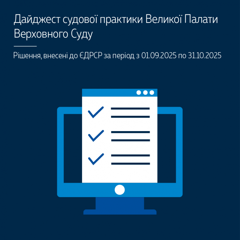 Пропонуємо до вашої уваги черговий дайджест судової практики Великої Палати Верховного Суду, який охоплює рішення, внесені до ЄДРСР у вересні – жовтні 2025 року – https://court.gov.ua/storage/portal/supreme/ogliady/Dajidgest_VP_09_10_2025.pdf.