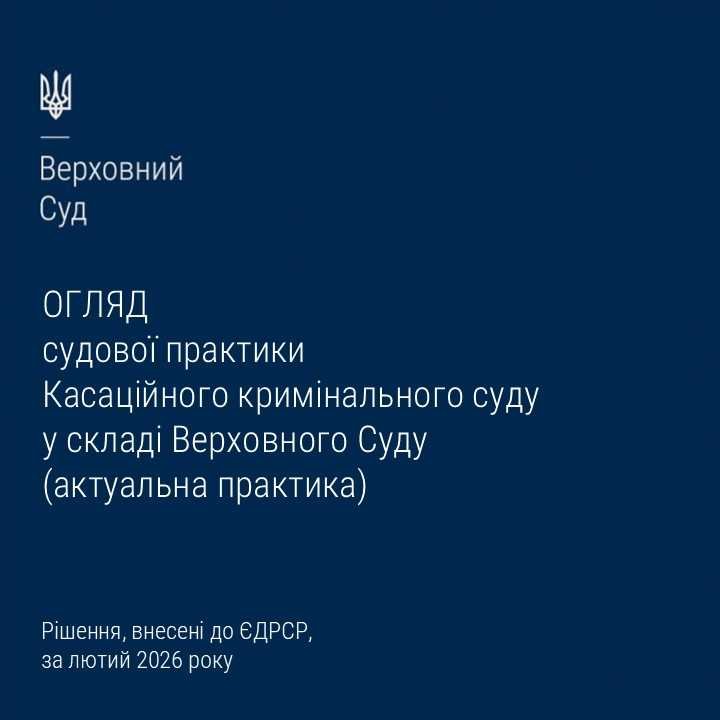 Пропонуємо до вашої уваги черговий огляд судової практики Касаційного кримінального суду у складі Верховного Суду – за лютий 2026 року, в якому відображено важливі правові позиції з кримінального та кримінального процесуального права: https://court.gov.ua/storage/portal/supreme/ogliady/Oglyad_KKS_02_2026.pdf.