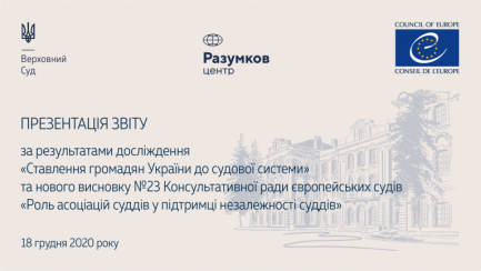 18 грудня 2020 року у форматі zoom-конференції відбувся круглий стіл «Презентація Звіту за результатами дослідження «Ставлення громадян України до судової системи» та Висновку № 23 Консультативної ради європейських суддів «Роль асоціацій суддів у підтримці суддівської незалежності».
