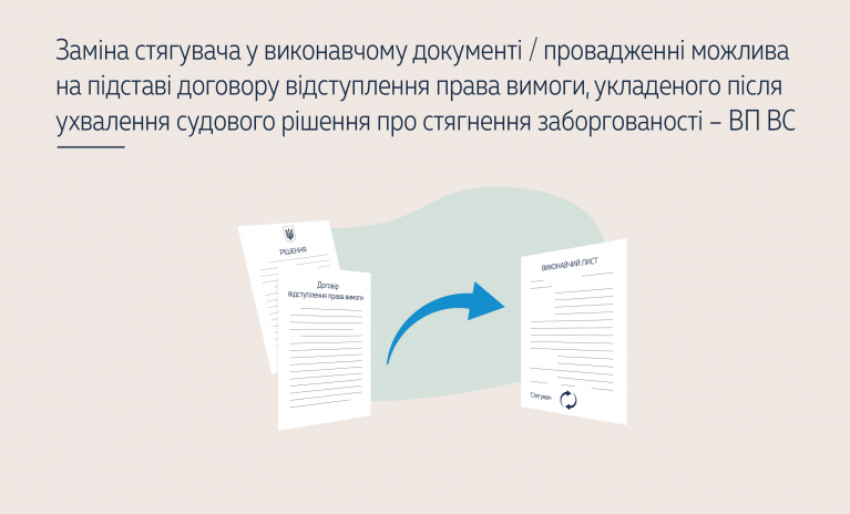 Договір відступлення права вимоги може бути укладений кредитором після ухвалення судового рішення про стягнення заборгованості, що є підставою для заміни стягувача у виконавчому листі / провадженні.