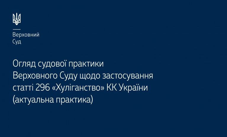 Касаційний кримінальний суд у складі Верховного Суду підготував тематичний огляд актуальної практики застосування ст. 296 КК України, яка передбачає кримінальну відповідальність за хуліганство – https://court.gov.ua/storage/portal/supreme/ogliady/Oglyad_KKS_st_296_hyliganstvo.pdf