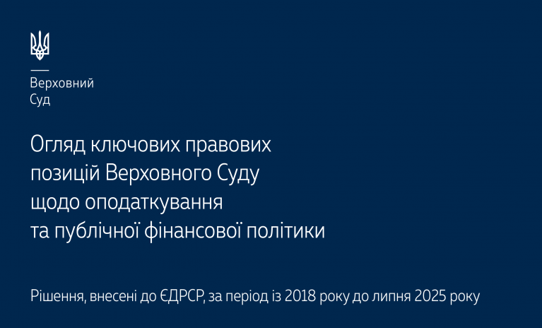 Пропонуємо ознайомитися з черговим тематичним оглядом (шостий випуск), у якому викладено ключові правові позиції Верховного Суду щодо оподаткування та публічної фінансової політики – https://court.gov.ua/storage/portal/supreme/ogliady/Ohliad_kliuchovi_pozytsii.pdf. Це видання містить висновки, сформульовані у вирішених по суті справах Великою Палатою ВС, об’єднаною палатою Касаційного адміністративного суду та судовою палатою з розгляду справ щодо податків, зборів та інших обов’язкових платежів, за весь період функціонування Верховного Суду. Аналітичний матеріал висвітлює актуальну судову практику ВС щодо оподаткування доходу за 2025 рік, зокрема: