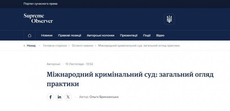 Читайте статтю «Міжнародний кримінальний суд: загальний огляд практики» на порталі Supreme Observer за посиланням: https://so.supreme.court.gov.ua/authors/1737/mizhnarodnyi-kryminalnyi-sud-zahalnyi-ohliad-praktyky