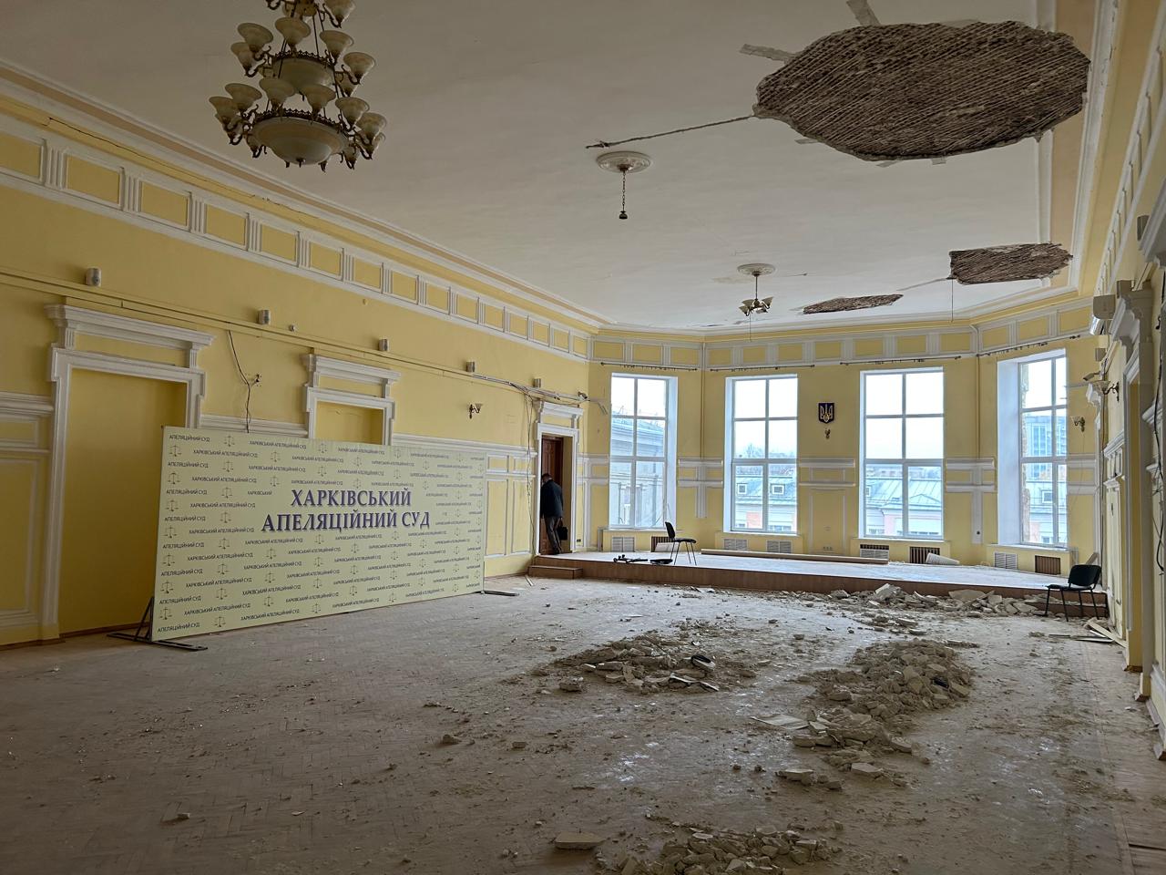 До початку заходу судді ВС оглянули частину будівлі Харківського апеляційного суду, пошкоджену внаслідок ракетних обстрілів державою-агресором, поспілкувались із суддями та працівниками апарату апеляційного суду щодо умов, у яких здійснюється судочинство в судах Харківської області, і висловили їм повагу за незламність і рішучість.