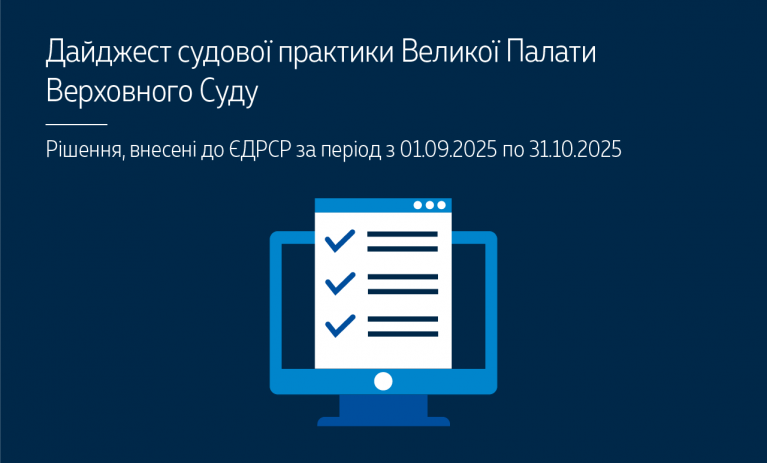Пропонуємо до вашої уваги черговий дайджест судової практики Великої Палати Верховного Суду, який охоплює рішення, внесені до ЄДРСР у вересні – жовтні 2025 року – https://court.gov.ua/storage/portal/supreme/ogliady/Dajidgest_VP_09_10_2025.pdf.