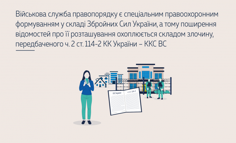 Залишаючи без зміни рішення судів попередніх інстанцій, Верховний Суд вказав, що з листа Головного управління Військової служби правопорядку ЗСУ вбачається, що відповідно до Закону України «Про Військову службу правопорядку у Збройних Силах України» Військова служба правопорядку у ЗСУ є спеціальним правоохоронним формуванням у складі ЗСУ. Інформація про розташування відділу Військової служби правопорядку не підлягає розміщенню у відкритому доступі і на офіційних вебпорталах Міністерства оброни України та Генерального штабу ЗСУ не оприлюднювалась. Таким чином, твердження сторони захисту про те, що місце розташування відділу Військової служби правопорядку є загальновідомим, суперечить здобутим доказам у справі, оскільки у відкритих джерелах за адресою, де обвинувачена здійснювала відеозапис із прив’язкою до місцевості, будь-яких даних про розташування відповідного військового формування не міститься.