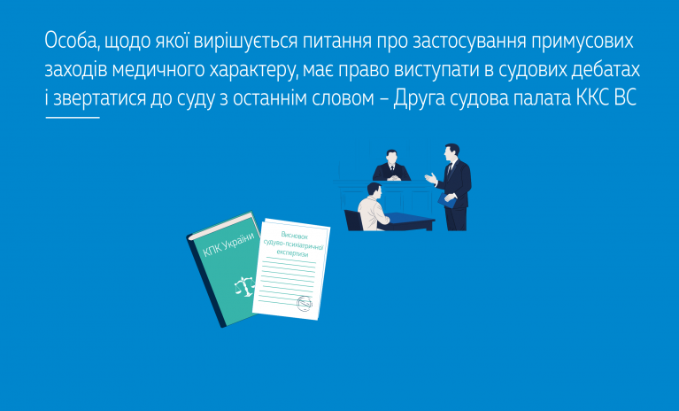 Особа, щодо якої вирішується питання про застосування примусових заходів медичного характеру, має право виступати в судових дебатах і звертатися до суду з останнім словом – Друга судова палата ККС ВС