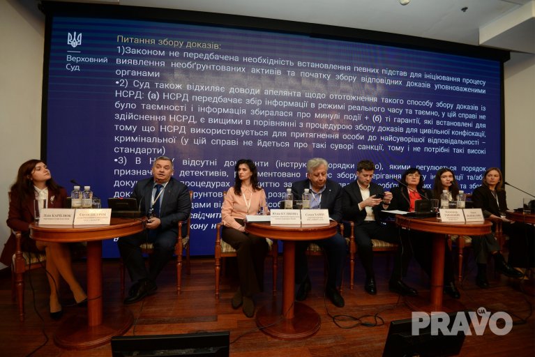Він висвітлив найцікавіші питання, що постали перед касаційним судом під час розгляду справ щодо такого нового інституту (з’явився в законодавстві лише в 2019 році), як цивільна конфіскація. Поінформував, що на сьогодні КЦС ВС уже розглянув дев’ять справ про стягнення в дохід держави необґрунтованих активів і одну – щодо забезпечення позову в таких справах. В суді перебуває ще три справи цієї категорії, під час розгляду яких можуть бути сформовані нові правові висновки.