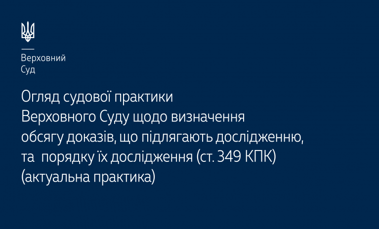 Касаційний кримінальний суд у складі Верховного Суду підготував черговий тематичний огляд актуальної практики щодо визначення обсягу доказів, що підлягають дослідженню, та порядку їх дослідження (ст. 349 КПК України) – https://court.gov.ua/storage/portal/supreme/ogliady/Oglyad_KKS_st_349.pdf.