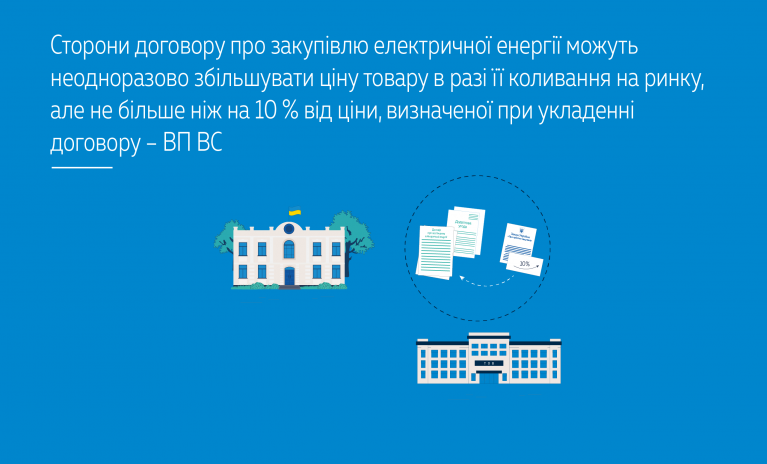 Суди попередніх інстанцій вимоги задовольнили в повному обсязі, зазначивши, що загальне збільшення не має перевищувати 10% від тієї ціни товару, яка була визначена сторонами при укладенні договору за результатами процедури закупівлі.