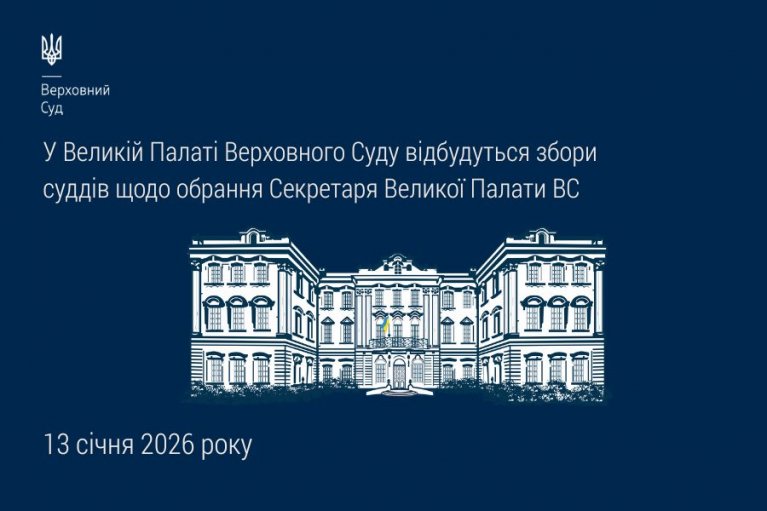З огляду на зазначене 13 січня 2026 року о 14:00 у Великій Палаті Верховного Суду відбудуться збори суддів. На порядку денному – питання про обрання Секретаря Великої Палати Верховного Суду.