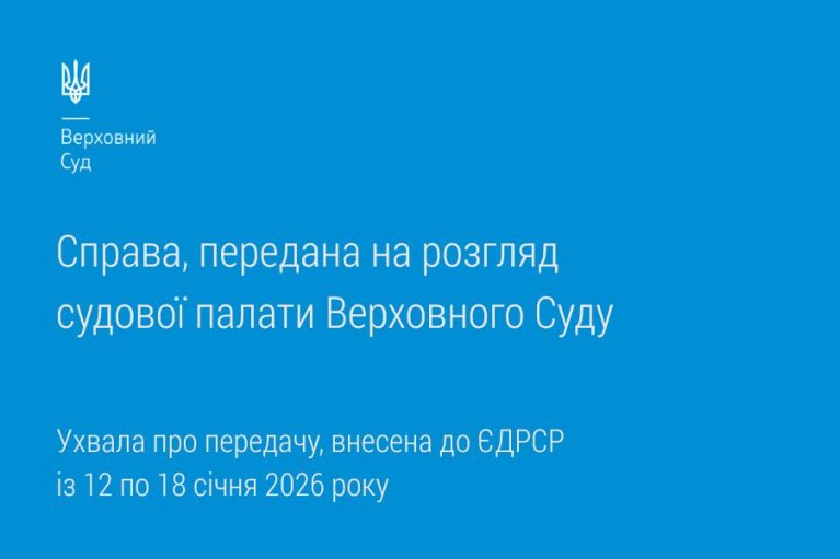 Цього тижня знайомимо вас зі справою, переданою на розгляд судової палати Верховного Суду, відповідно до ухвали про передачу, внесеної до ЄДРСР із 12 по 18 січня 2026 року.