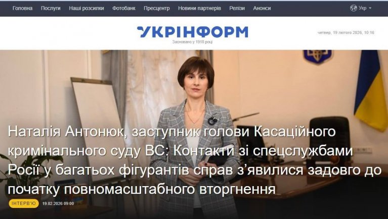 Посилання на інтерв’ю – https://www.ukrinform.ua/rubric-society/4092807-natalia-antonuk-zastupnik-golovi-kasacijnogo-kriminalnogo-sudu-vs.html