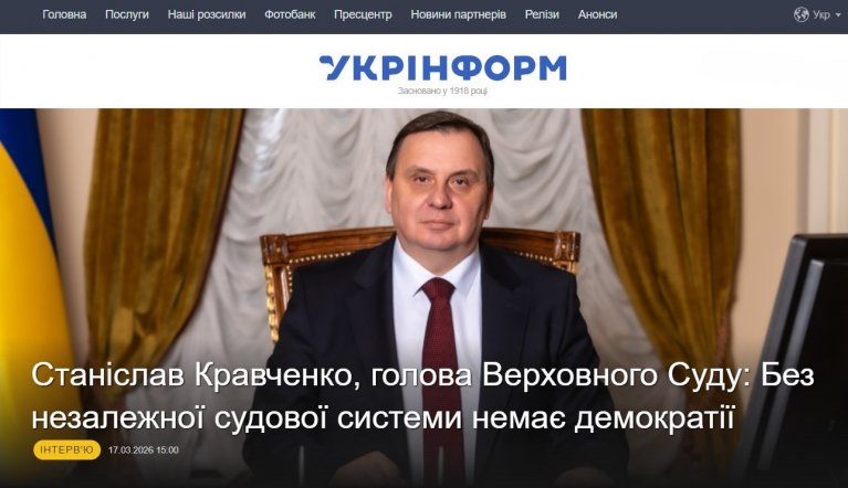 Посилання на інтервʼю: https://www.ukrinform.ua/rubric-polytics/4102487-stanislav-kravcenko-golova-verhovnogo-sudu.html