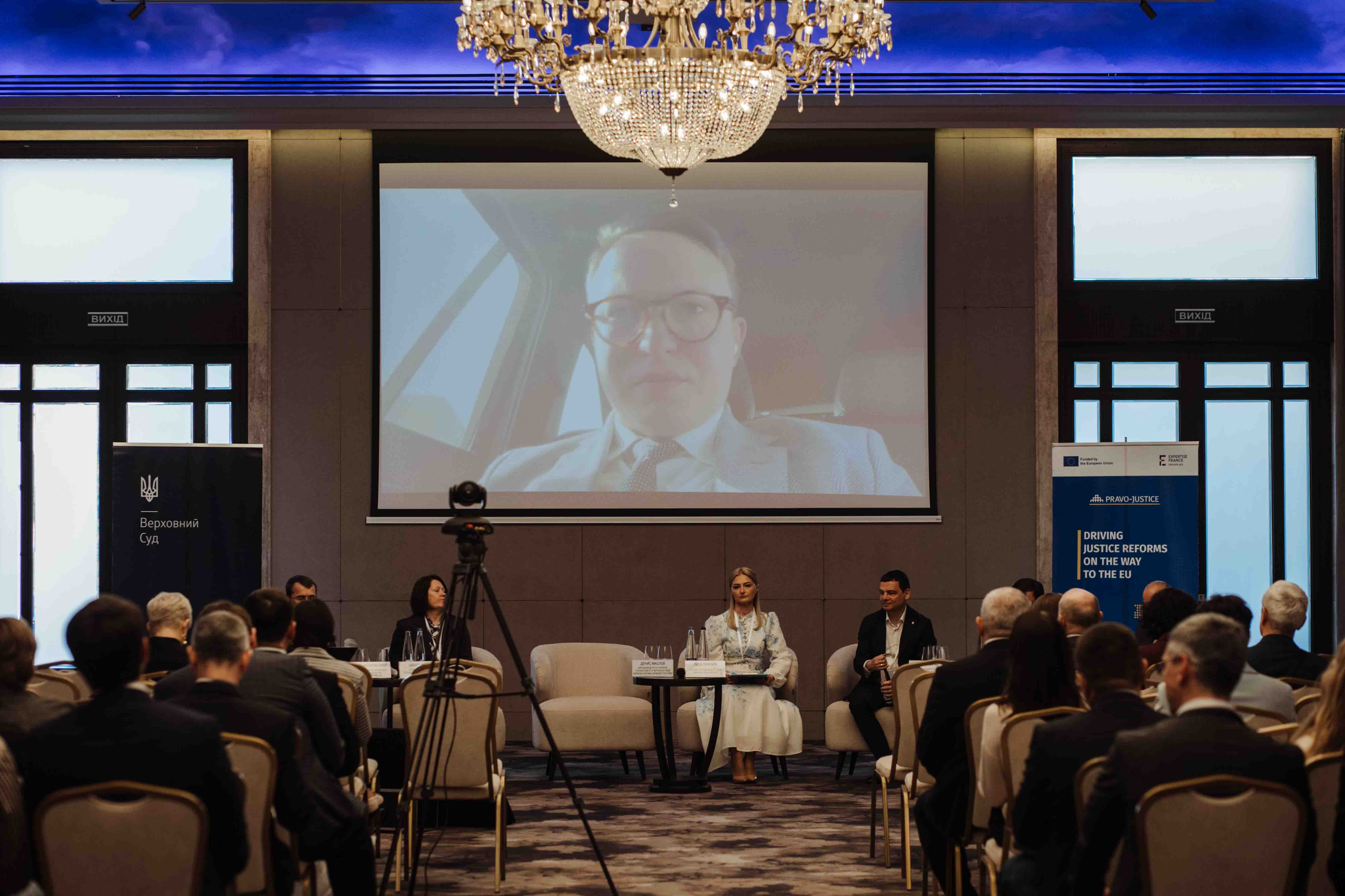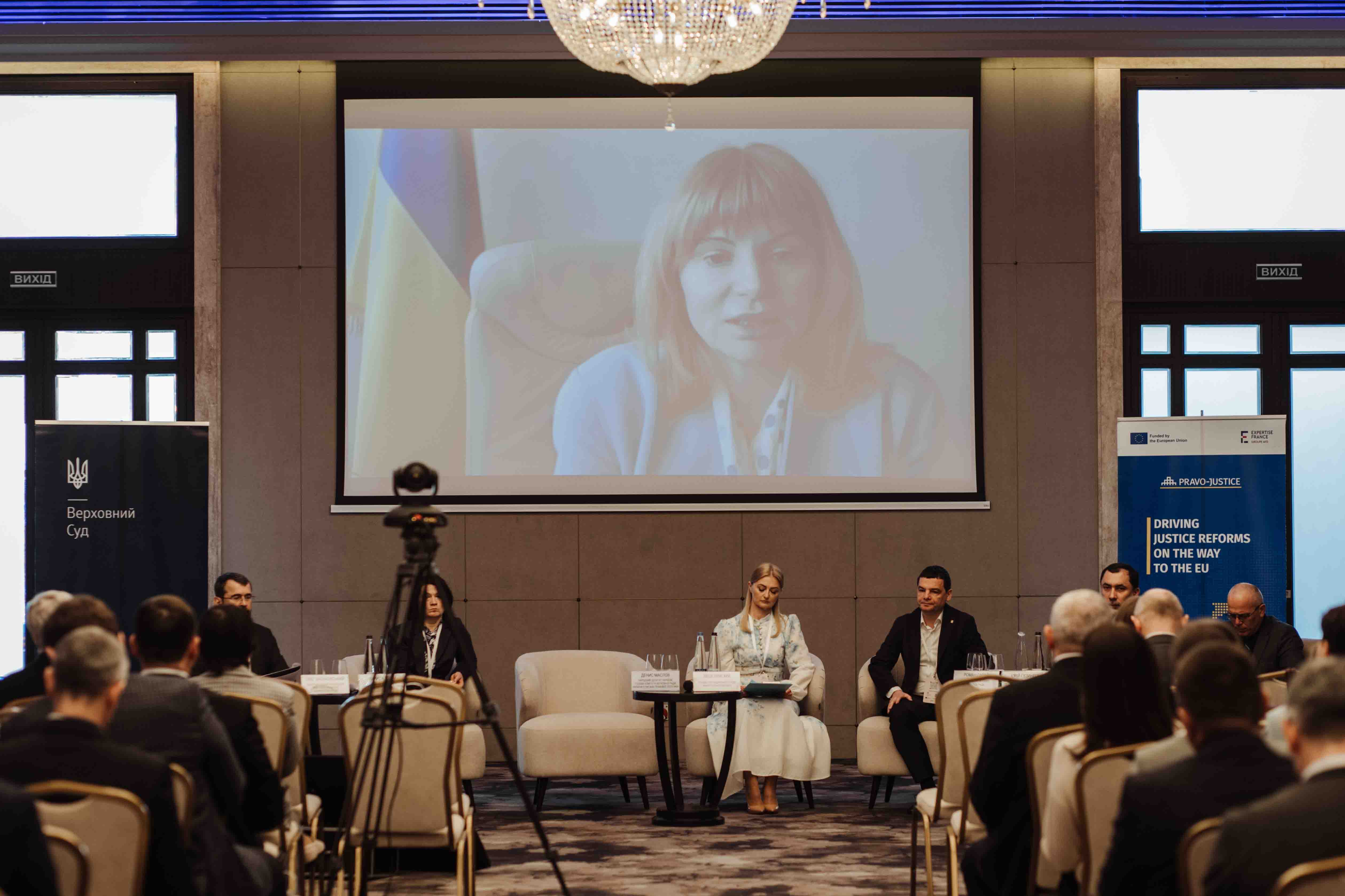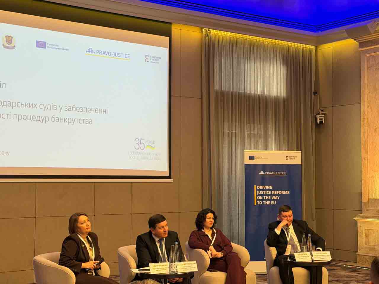 Керівниця компоненту «Виконання судових рішень та захист прав власності» проєкту ЄС «Право-Justice» Ірина Жаронкіна відзначила співпрацю проєкту із суддями у сфері неплатоспроможності. Вона зауважила, що від часу набрання чинності КУзПБ команда проєкту працює разом із представниками господарської юрисдикції, і за цей період помітно змінилися як підходи до процедур неплатоспроможності, так і ставлення до них у правничому середовищі. Водночас вона наголосила, що значна роль у розвитку цієї сфери належить саме суддям господарських судів, зокрема суддям ВС у КГС, адже ця юрисдикція перебуває на перетині права й економіки та поєднує правову експертизу з розумінням економічної логіки господарських відносин.
