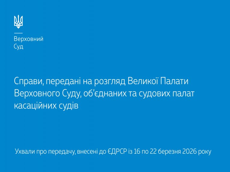 Цього тижня знайомимо вас зі справами, переданими на розгляд Великої Палати Верховного Суду, об’єднаних та судових палат касаційних судів, відповідно до ухвал про передачу, внесених до ЄДРСР із 16 по 22 березня 2026 року.