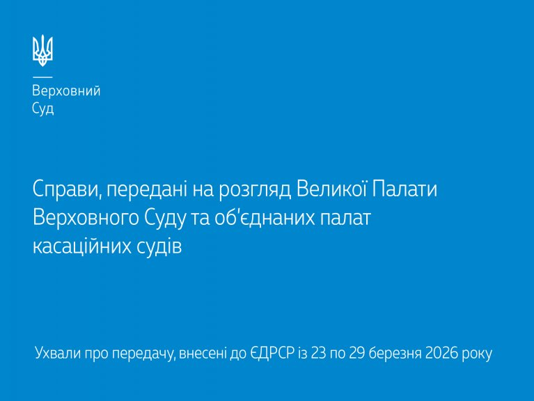 Цього тижня знайомимо вас зі справами, переданими на розгляд Великої Палати Верховного Суду та об’єднаних палат касаційних судів, відповідно до ухвал про передачу, внесених до ЄДРСР із 23 по 29 березня 2026 року.