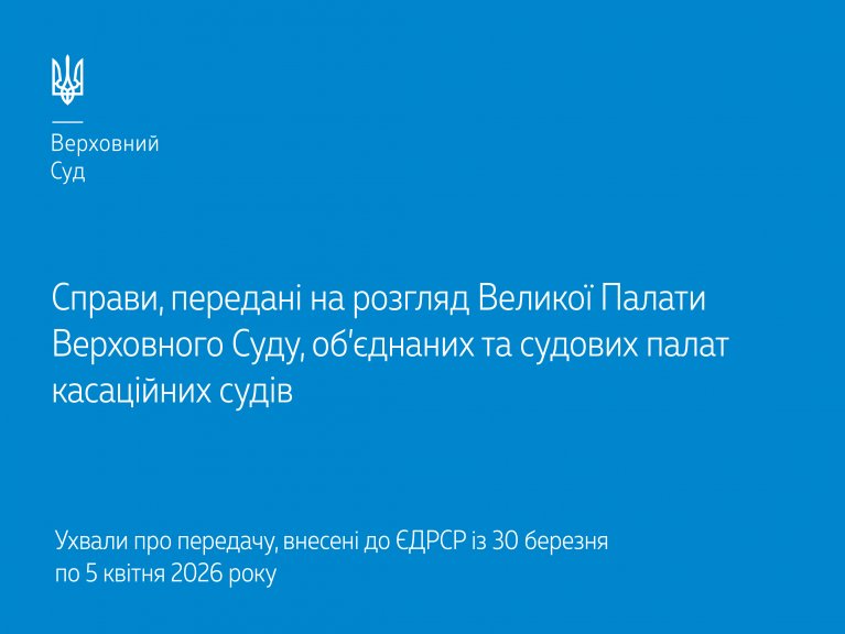 Цього тижня знайомимо вас зі справами, переданими на розгляд Великої Палати Верховного Суду, об’єднаних та судових палат касаційних судів відповідно до ухвал про передачу, внесених до ЄДРСР із 30 березня по 5 квітня 2026 року.