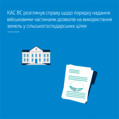Верховний Суд врахував, що відповідно до ч. 1 ст. 3, ч. 1 ст. 4 Закону України «Про правовий режим майна у Збройних Силах України» військове майно закріплюється за військовими частинами Збройних Сил України на праві оперативного управління (з урахуванням особливостей, передбачених ч. 2 ст. 3 цього Закону). Законом України «Про використання земель оборони» (ч. 1 ст. 4) передбачено, що військові частини за погодженням з органами місцевого самоврядування або місцевими органами виконавчої влади і в порядку, визначеному Кабінетом Міністрів України, можуть дозволяти фізичним і юридичним особам вирощувати сільськогосподарські культури, випасати худобу та заготовляти сіно на землях, наданих їм у постійне користування.