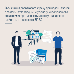 Отже, ВП ВС дійшла висновку, що необізнаність спадкоємця про наявність заповіту є поважною причиною пропуску строку для прийняття спадщини, а у вирішенні питання про поважність причин пропуску строку для прийняття спадщини потрібно враховувати свободу заповіту як фундаментальний принцип спадкового права. Проте це стосується обставин, за яких заповіт є єдиною підставою спадкування і незнання про його існування не вимагає від спадкоємця вчинення дій щодо прийняття спадщини. Спадкоємець за законом, який бажає прийняти спадщину, але на час відкриття спадщини не проживав постійно із спадкодавцем, має подати до нотаріальної контори заяву про прийняття спадщини у встановлений шестимісячний строк із часу відкриття спадщини.