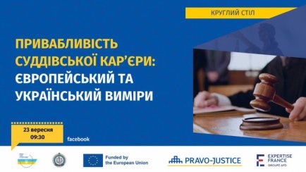 Круглий стіл проводиться з метою обговорення питання привабливості суддівської кар’єри в українському та європейському вимірах, наявних викликів та можливостей для їх подолання.