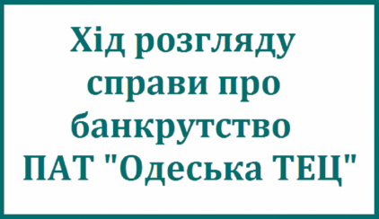 В провадженні Господарського суду Одеської області перебуває справа №17-2-1-7-5-6-5-21-2-32-39-18/01-5010 про визнання банкрутом ПАТ «Одеська ТЕЦ».