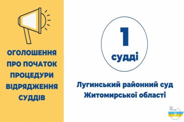 1 судді до Лугинського районного суду Житомирської області.