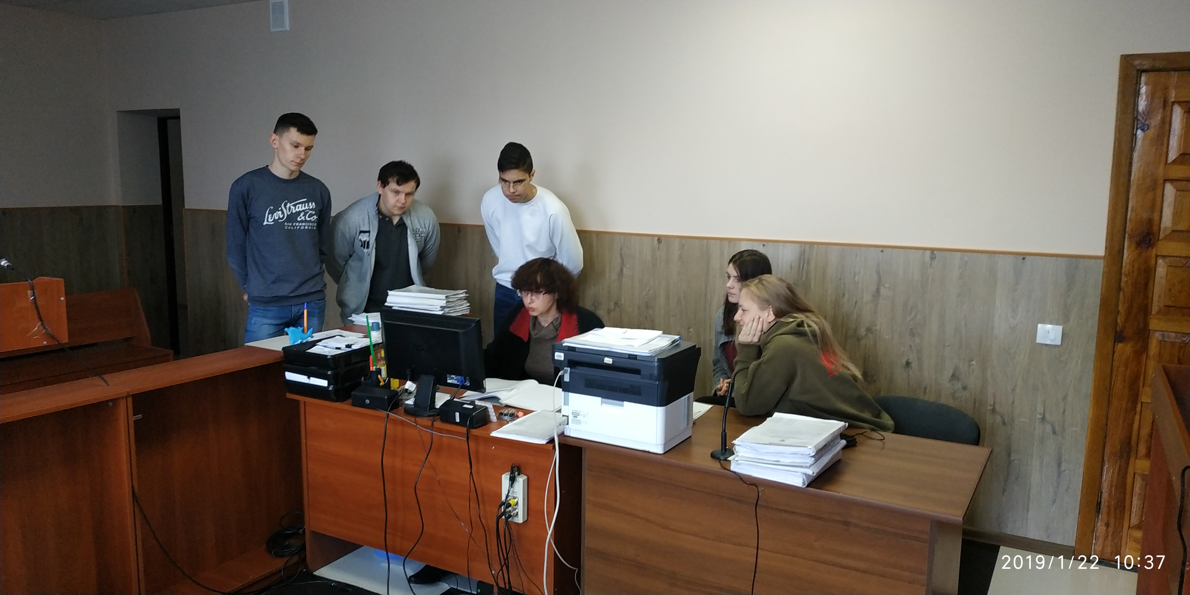 Консультант суду Шпак Катерина, відповідальна особа за приймання вхідної кореспонденції суду та здійснення автоматизованого розподілу справ, розповіла студентам про роботу підсистеми «Електронний суд», продемонструвала як виглядає особистий кабінет в підсистемі на прикладі власного. Показала які підгілки тут є та як подати позовну заяву до суду. Студентам було продемонстровано реєстрацію справ та здійснення їх автоматизованого розподілу за допомогою автоматизованої системи документообігу суду.