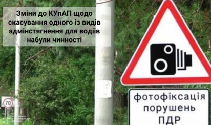 Закон виключає з КУпАП норми про дію адміністративного стягнення у вигляді штрафних балів, що накладається на громадян за правопорушення у сфері безпеки дорожнього руху, зафіксованих в автоматичному режимі.