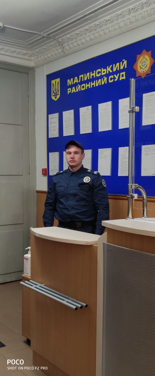 З початком повномасштабної військової агресії проти нашої країни, через наближення фронту до міста Малина, головою Малинському районному суді Житомирської області було винесено розпорядження щодо проведення розгляду лише невідкладних судових справ. Вся робота апарату суду була спрямована на вжиття заходів задля збереження справ, документів та матеріальних цінностей.