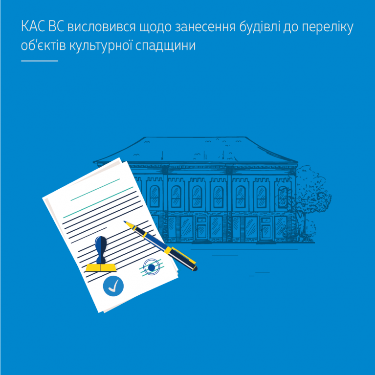 Верховний Суд у складі колегії суддів Касаційного адміністративного суду, розглянувши цю справу в касаційному порядку, вказав, що питання про занесення об’єкта культурної спадщини до Переліку вирішується на підставі вичерпного переліку документів, а саме: фотофіксації об’єкта; історичної довідки або витягу з наукового звіту дослідника археологічної спадщини. При цьому обов’язковою вимогою до складання історичної довідки законодавець визначає її підписання особою, що має науковий ступінь доктора філософії (кандидата наук або доктора наук) за спеціальністю «музеєзнавство, пам’яткознавство» або архітектури – для об’єктів архітектури, є також загальні вимоги щодо її змісту стосовно інформації, яка має міститись у ній залежно від класифікації об’єктів культурної спадщини.