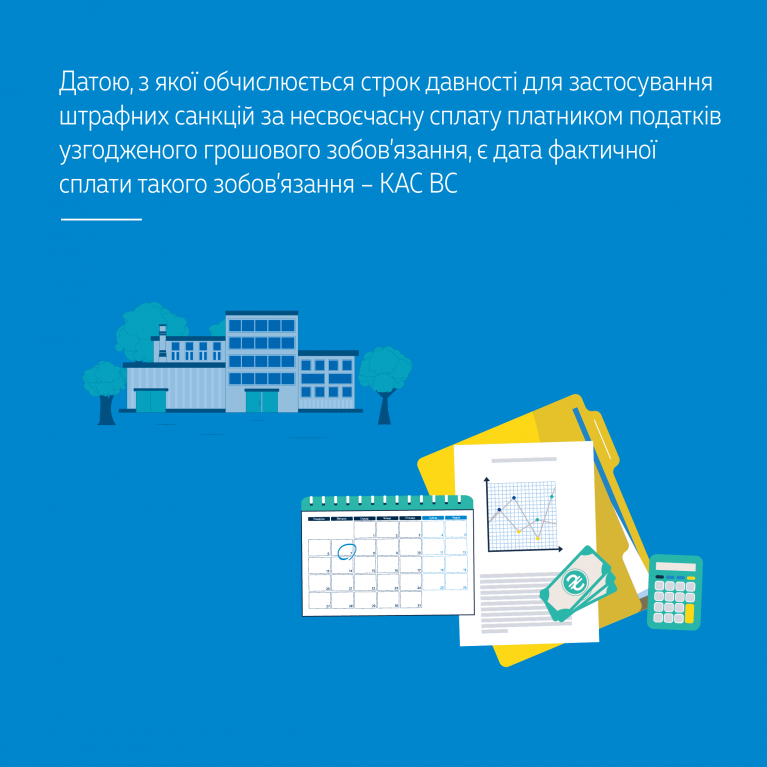 З огляду на викладене КАС ВС дійшов висновку, що датою, з якої обчислюється 1095-денний строк, визначений п. 102.1 ст. 102 ПК України, як у частині проведення податковим органом камеральної перевірки з питань своєчасності сплати узгодженого податкового (грошового) зобов’язання, так і застосування штрафних санкцій згідно з п. 126.1 ст. 126 ПК України за несвоєчасну сплату платником податків узгодженого грошового зобов’язання, є дата фактичної сплати узгодженої суми податкового зобов’язання.