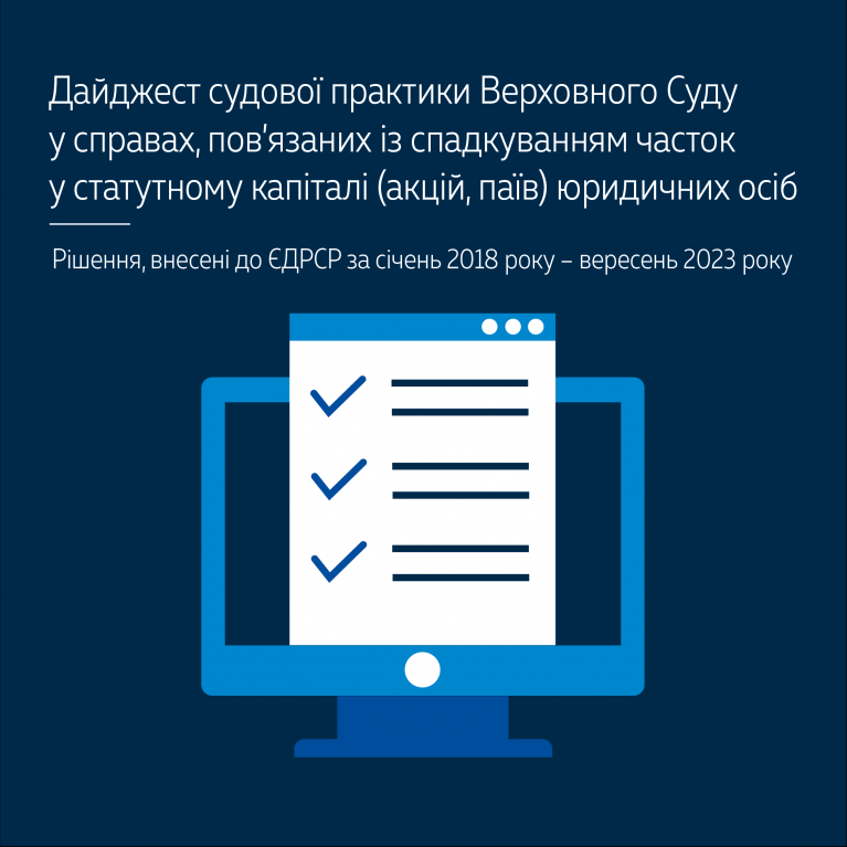 Пропонуємо до уваги дайджест судової практики Верховного Суду у справах, пов’язаних із спадкуванням часток у статутному капіталі (акцій, паїв) юридичних осіб: https://is.gd/dBDZOX.