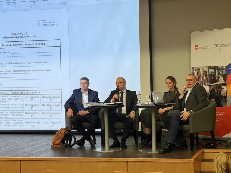Роман Сабодаш, порушивши питання подання декларації доброчесності судді в контексті викликів сьогодення, звернув увагу присутніх на новели у декларації та роз’яснення Комісії щодо порядку її заповнення. Також Сабодаш презентував присутнім електронний сервіс Комісії — «Кабінет суддівської кар’єри», який буде задіяно для онлайн-подання документів для участі в конкурсі на посади суддів у судах апеляційної інстанції.