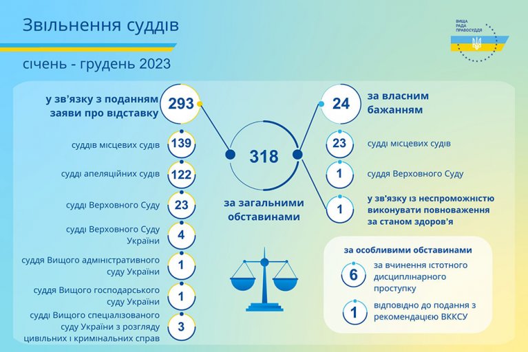 Протягом січня – грудня 2023 року Вища рада правосуддя ухвалила рішення щодо звільнення 325 суддів.
