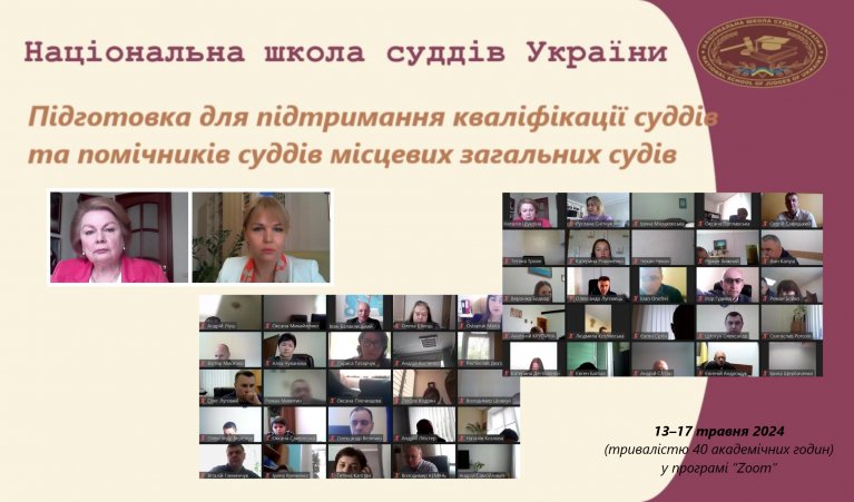 13 – 17 травня 2024 року Національна школа суддів України проводить підготовку для підтримання кваліфікації суддів та помічників суддів місцевих загальних судів.