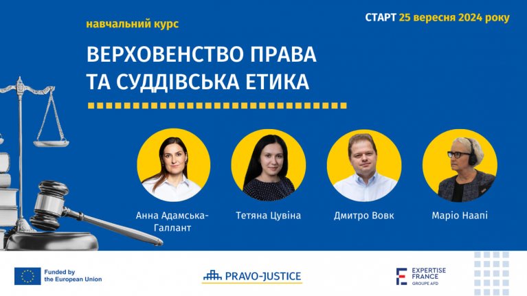 Проєкт ЄС "Право-Justice" оголошує добір суддів для участі у оновленому навчальному курсі "Верховенство права та суддівська етика".