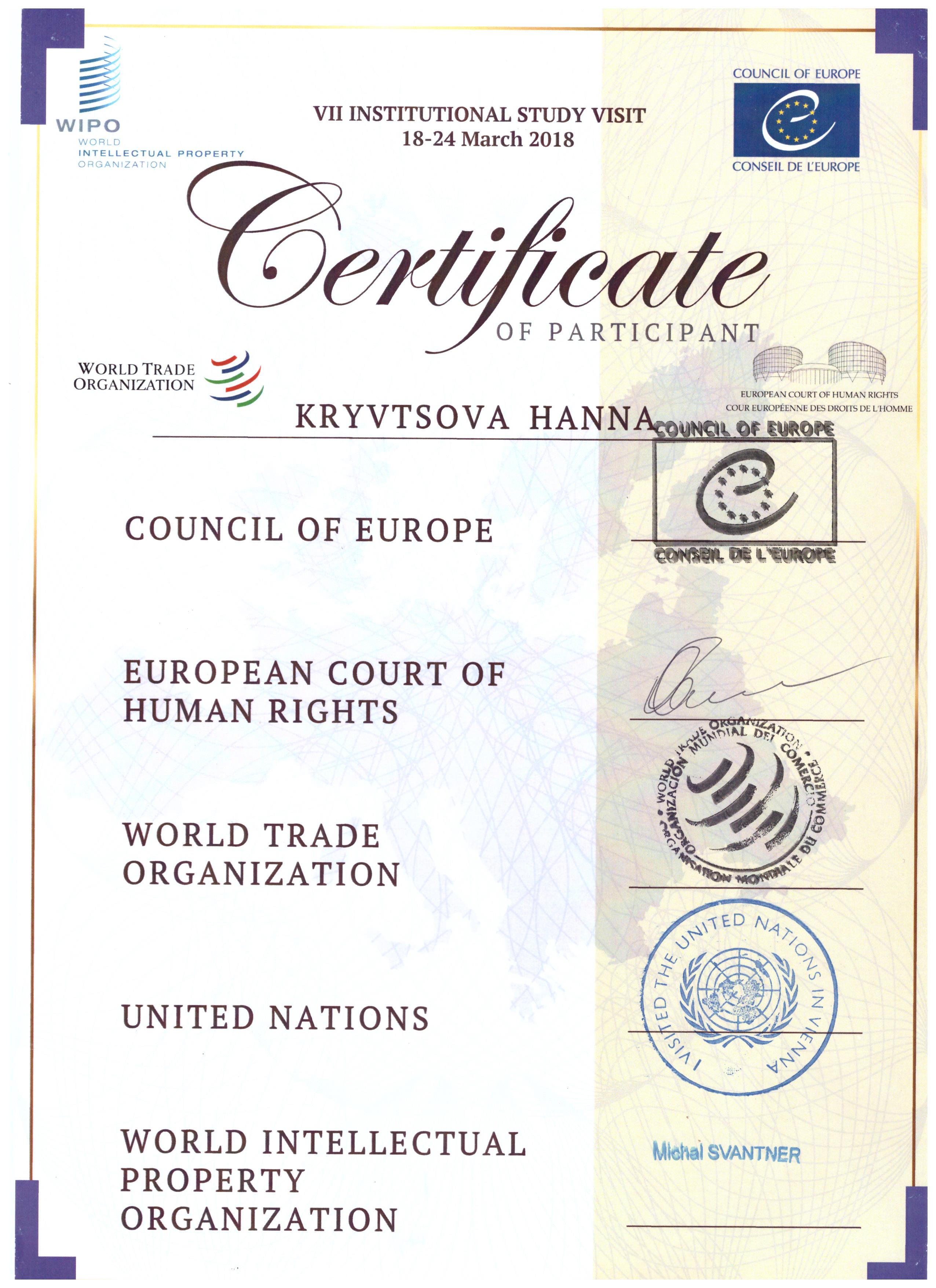 З 18 по 24 березня 2018 року суддя Зарічного районного суду м. Суми Ганна Кривцова брала участь у VII Інституційному Навчальному Візиті в міжнародні установи.