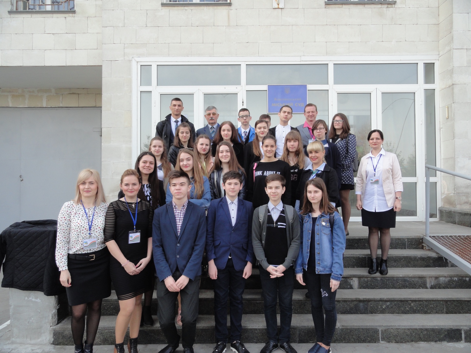 Зустріла учнів заступник керівника апарату Жовтоводського міського суду Дніпропетровської області Поліщук З.І.,яка розповіла про історію створення суду, його діяльність та спеціалізацію суддів,ознайомила учнів з порядком пропуску та реєстрації  відвідувачів суду.