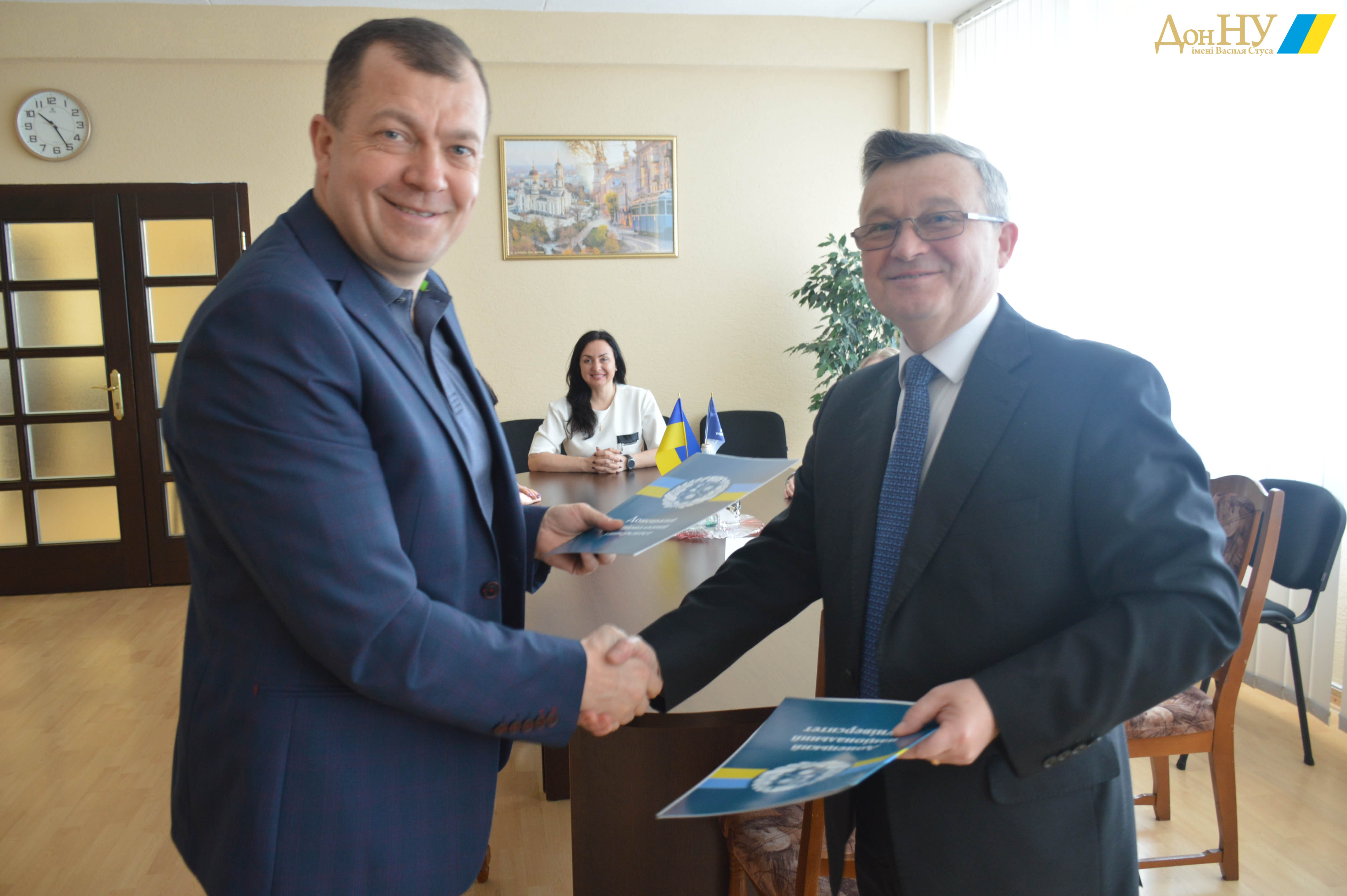 Вінницький міський суд Вінницької області в особі голови суду Андрія Михайленка та Донецький національний університет імені В. Стуса в особі ректора Романа Гринюка підписали договір про співпрацю. Зустріч відбулася 12 квітня 2018 року на базі університету. Крім очільників, у заході взяли участь керівник апарату суду Неля Гудемчук, заступник керівника апарату Руслана Федорова та кандидат юридичних наук, доцент кафедри цивільного права і процесу Антонюк Олена.