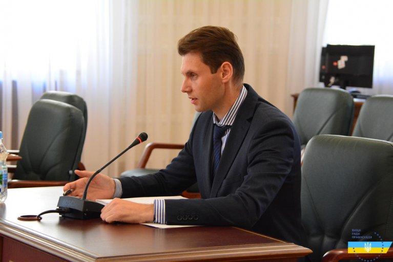 Заслухавши доповідача – члена Вищої ради правосуддя Комкова В.К., прокурора першого відділу управління процесуального керівництва, підтримання державного обвинувачення та представництва в суді Спеціалізованої антикорупційної прокуратури Генеральної прокуратури України Кохна В.О. (на фото) та представника судді – адвоката Шкурдіна Є.Є., Вища рада правосуддя ухвалила клопотання заступника Генерального прокурора – керівника Спеціалізованої антикорупційної прокуратури Холодницького Н.І. задовольнити, тимчасово, до 27 червня 2018 року,  відсторонити суддю Подільського районного суду міста Києва Войтенко Тетяну Віталіївну від здійснення правосуддя у зв’язку з притягненням до кримінальної відповідальності.