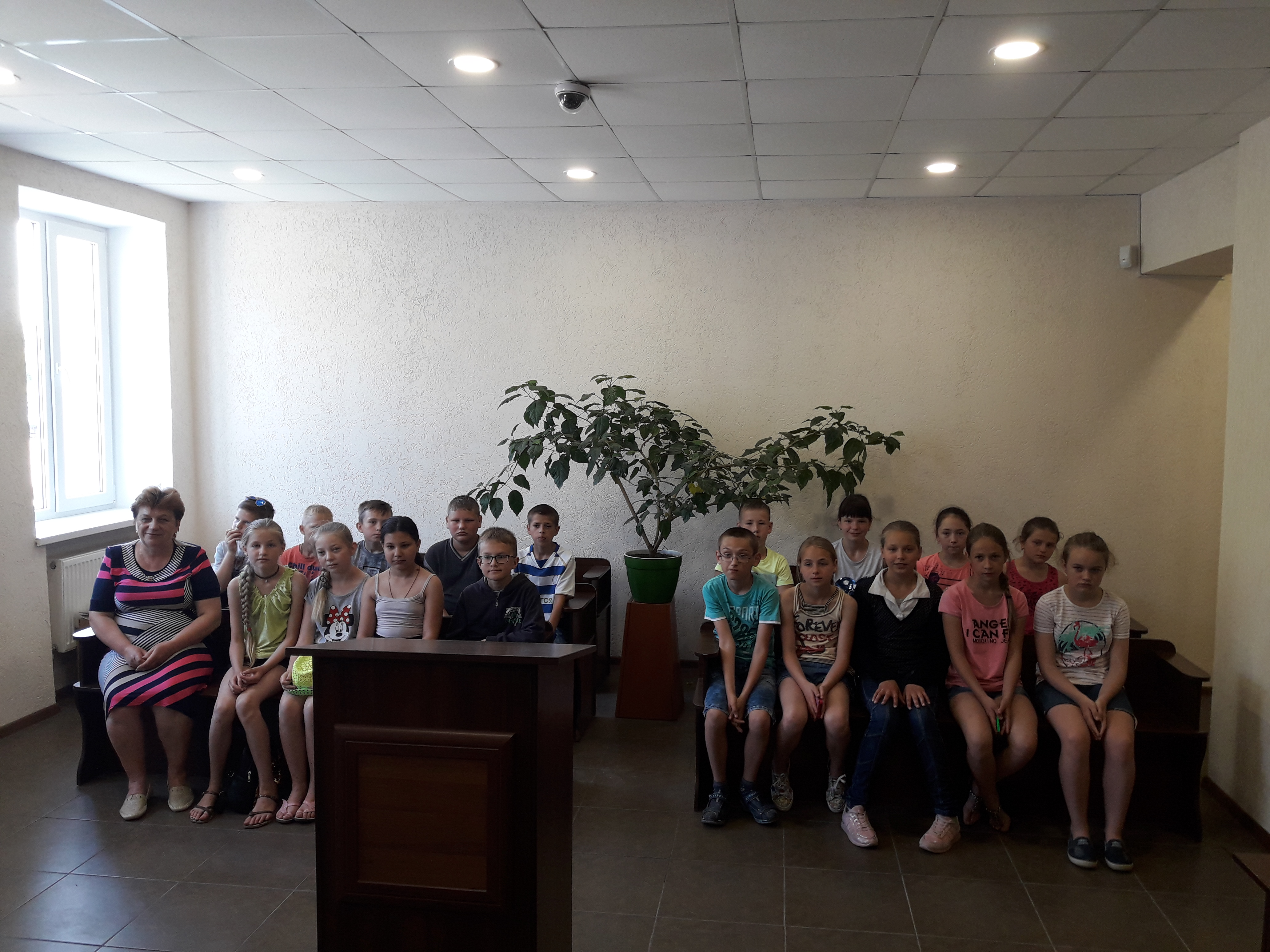 Разом із заступником керівника апарату суду діти з’ясували хто працює в суді, які справи розглядає місцевий суд та зробили коротеньку екскурсію приміщенням суду.