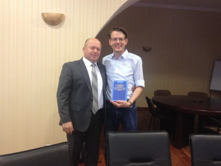 У рамках проекту Twinning 6 червня ц.р. відбулася також особиста зустріч голови КАС ВС Михайла Смоковича з німецьким колегою Мартіном Штайнкюлером. У зустрічі також взяли участь cекретар судової палати КАС ВС Раїса Ханова та постійний радник проекту Twinning Яутріте Брієде.